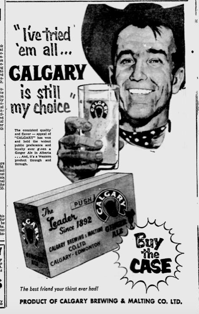 However, as promised, here are the two excellent 60's-era Calgary Brewery ads via Ross that show what happens when a brewery can't actually discuss what they *actually* brew, and come up with their own ginger ale ads instead.